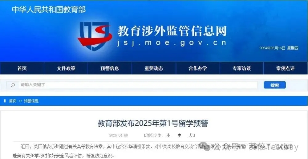 4月9日教育部发布的《2025年第1号留学预警》引发国际教育圈热议!此次预警的发布恰逢中美双方在经贸领域频繁交锋!多重信号叠加下,有家长焦虑表示:“赴美留学不仅要算经济账,现在还得看政策博弈的脸色?”更有业内人士观察到,部分原计划申请美国高校的家庭开始转向英联邦及亚洲院校,称“不愿让孩子卷入大国竞争的夹缝里"。接下来倍倍为大家解析预警背后的真相,理性看待赴美留学趋势!