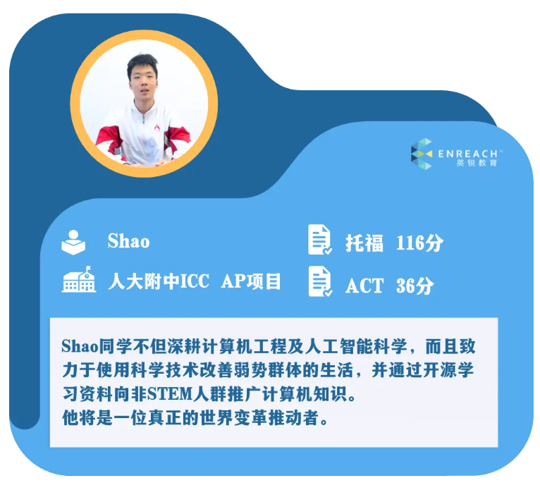 非常感谢周蓉老师在高中三年的陪伴。也是在英锐的启发下我才可以从一个单一的技术理工思维延展到拥有把技术与商业、公益、领导力相结合的多维思考,让我从一个单纯的理工男转转化为具有多元思考力的项目创始人。
