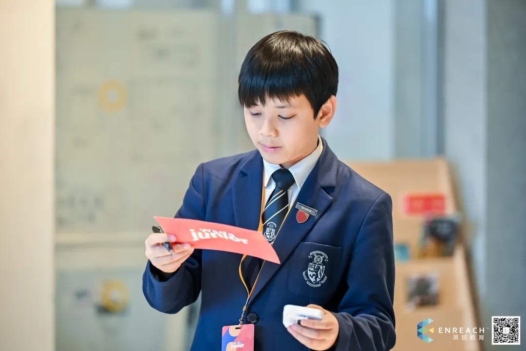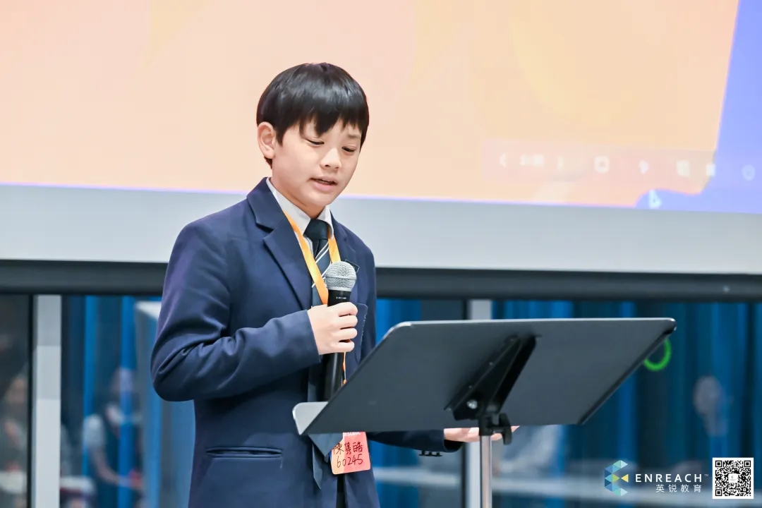 在2024-2025春季大湾区WSDA即兴辩论活动开幕式上,来自哈罗香港国际学校的陈雋皓Jason作为选手代表发言。