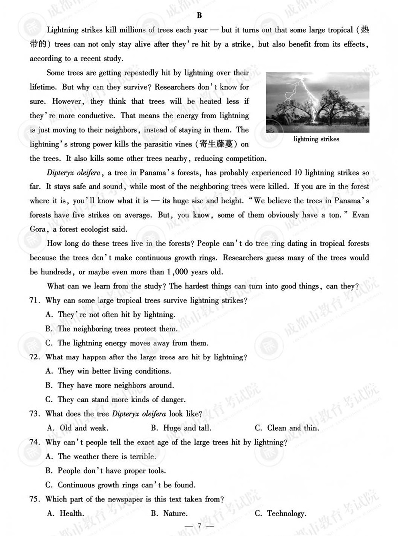 一起来做成都中考英语题!