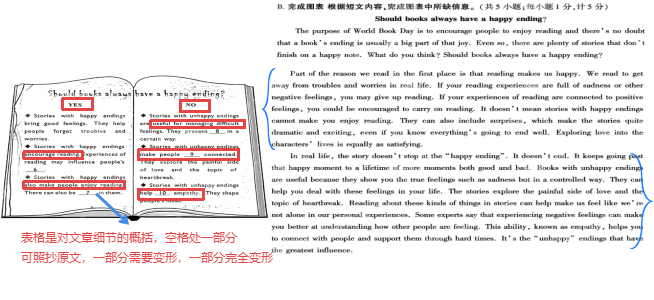 有些题可以直接从原文中找到单词填写,有些题不能,需要根据句意,对原文的词性和词形进行转换,或巧用同义词、反义词等转换表达方式