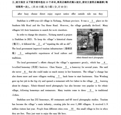 第三题,短文填空