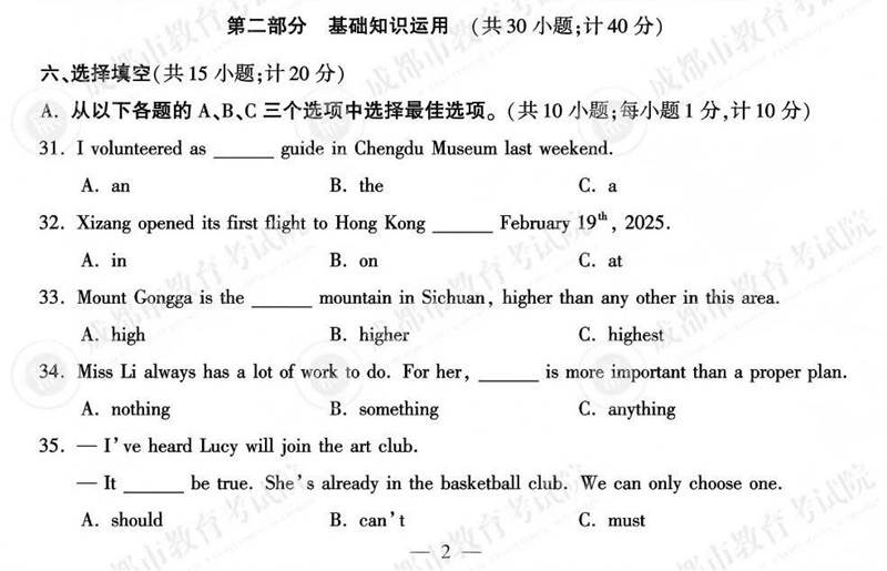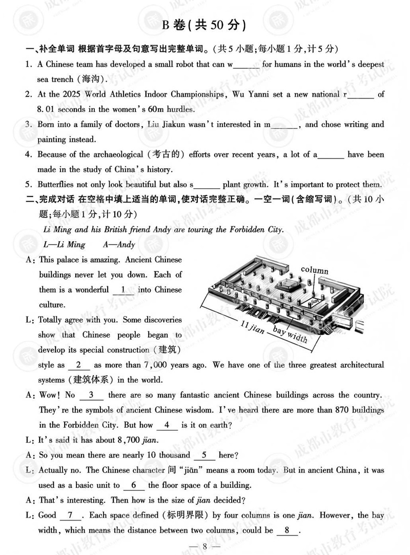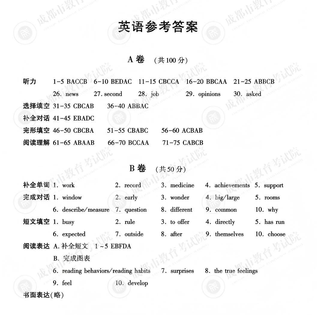 2025成都中考英语题答案