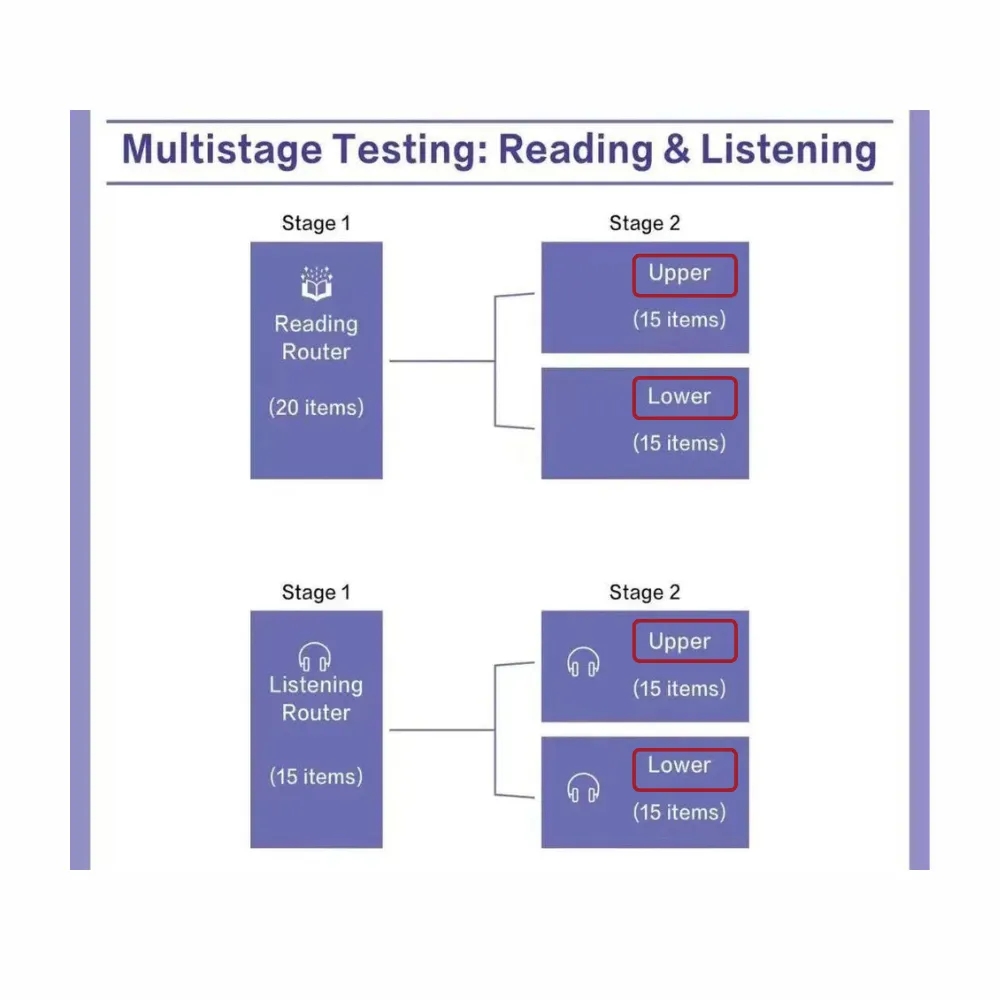阅读和听力部分将引入先进的“多阶段自适应测试”(Multistage Adaptive Testing)机制:考试不再是固定难度,而是如同一位敏锐的考官,根据考生在前一阶段的表现,实时动态调整后续题目的挑战等级。这意味着每位考生的试卷都将独一无二,实力超群的考生将面对更高难的题目,用表现赢得更高能力分级证明;而每位考生也需更加沉着稳定地应对变化,防止失误过多掉入低等级区而未能展现自己的真实能力。