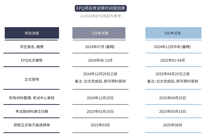 ***请注意:7-8月加入EPQ项目,可赶上次年1月EPQ考试季。