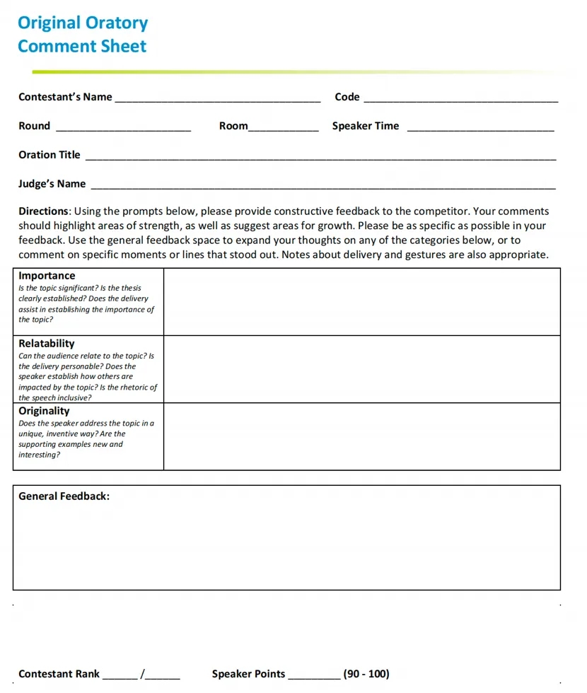 原创演讲评分单示例