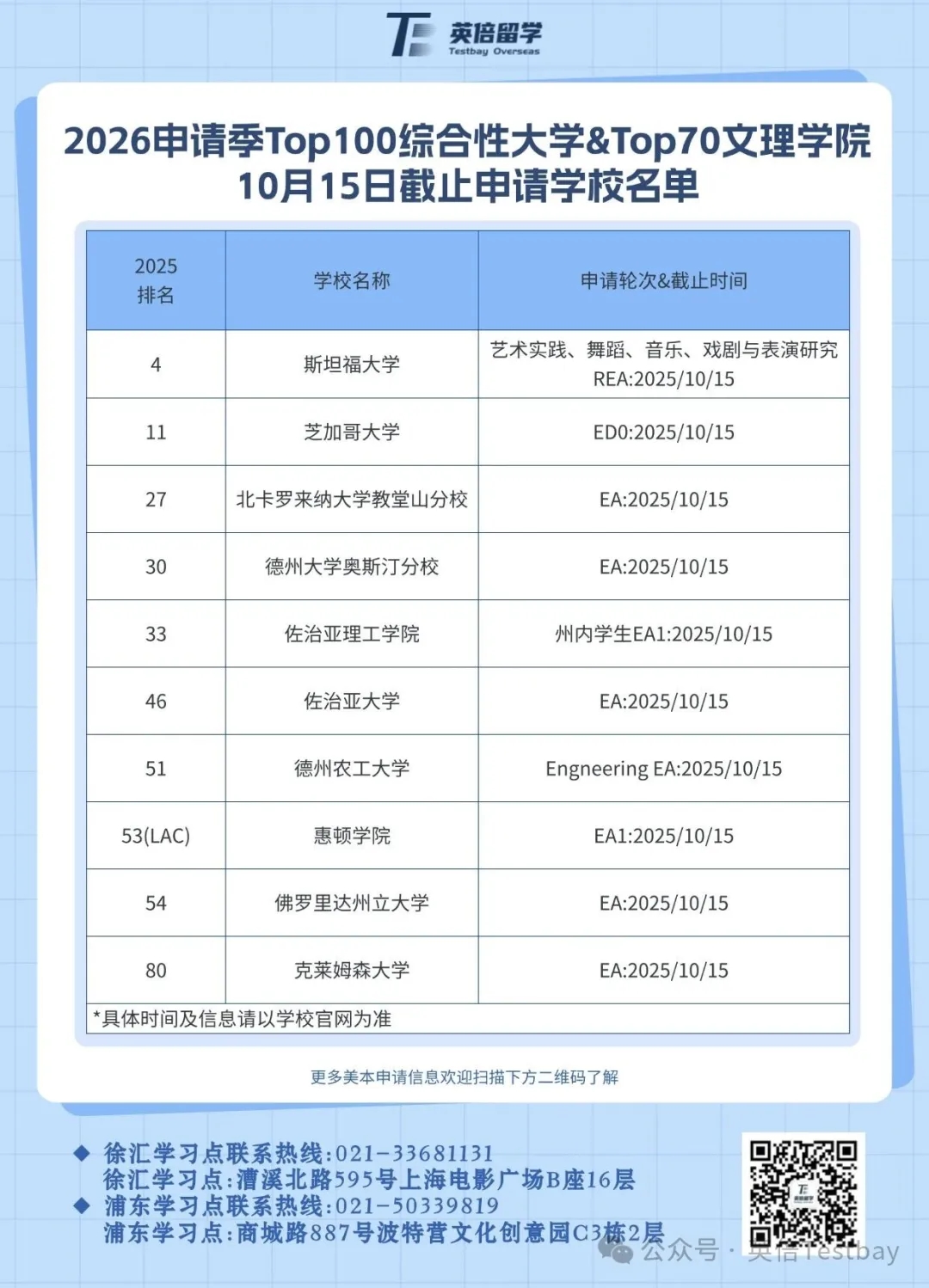 国庆中秋小长假结束,更标志着一个关键节点的到来:2026Fall美本申请季正式进入冲刺阶段。接下来为大家盘点下10月15日截止早申的学校,希望能助力大家把握早申时机,抢占梦校录取先机!