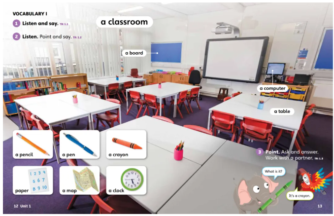 1. 先看画面:指着图问孩子 “What’s this?”,引导孩子用中文或英文回答。