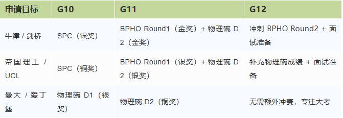 11-12 月:若 BPHO Round1 获金奖,可冲刺 Round2(11 月报名,次年 2 月参赛),但需优先准备牛剑面试;