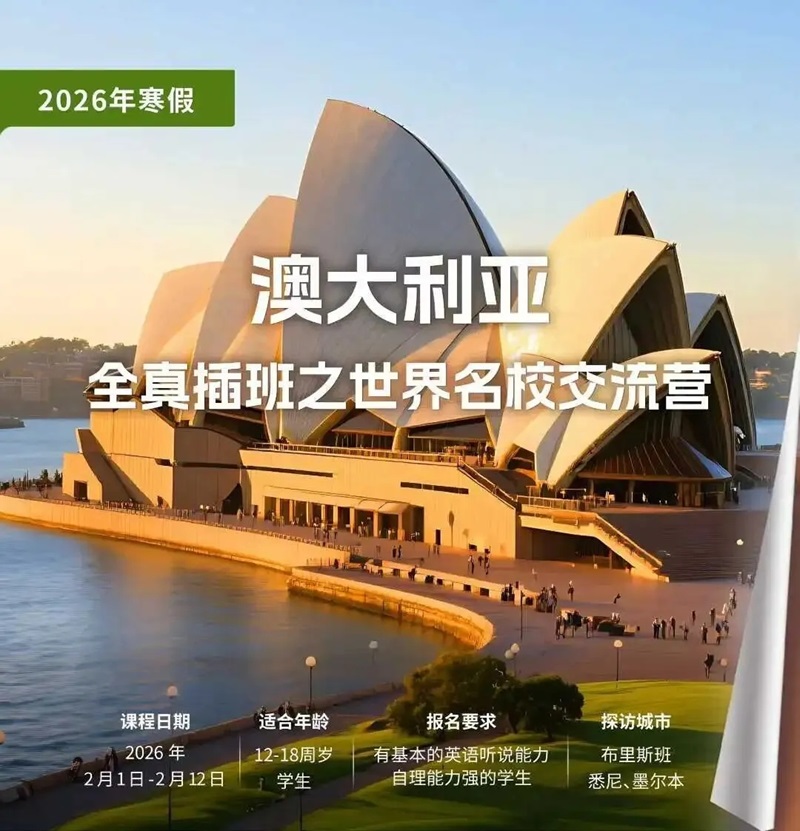 > 2026寒假研学| 澳大利亚全真插班之世界名校交流营(12-18岁)