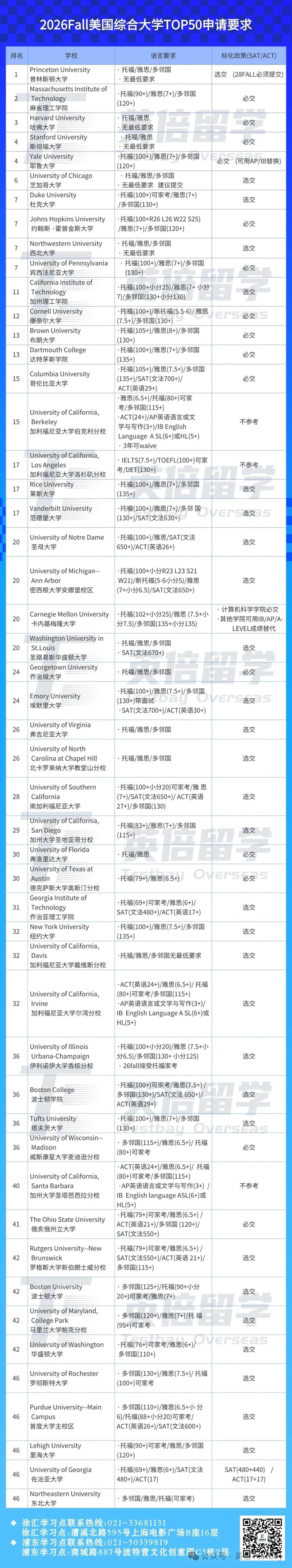 综合大学TOP50申请要求
