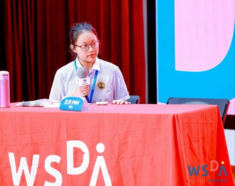 这些历练,让Katherine明确了自己对于辩论的热爱,也让她渴望在一个更纯粹的辩论舞台上发挥自己的潜能。恰逢此时,WSDA的即兴辩论赛事走进了她的视野,这仿佛是一个为她量身打造的平台。很快,在2025春季北京区域赛中,Katherine获得中学组即兴辩论冠军,并在几个月后的全国总决赛上再度登顶。“不鸣则已,一鸣惊人”,经历漫长的蛰伏期后,Katherine的天赋和热爱终于迎来了酣畅淋漓的绽放。
