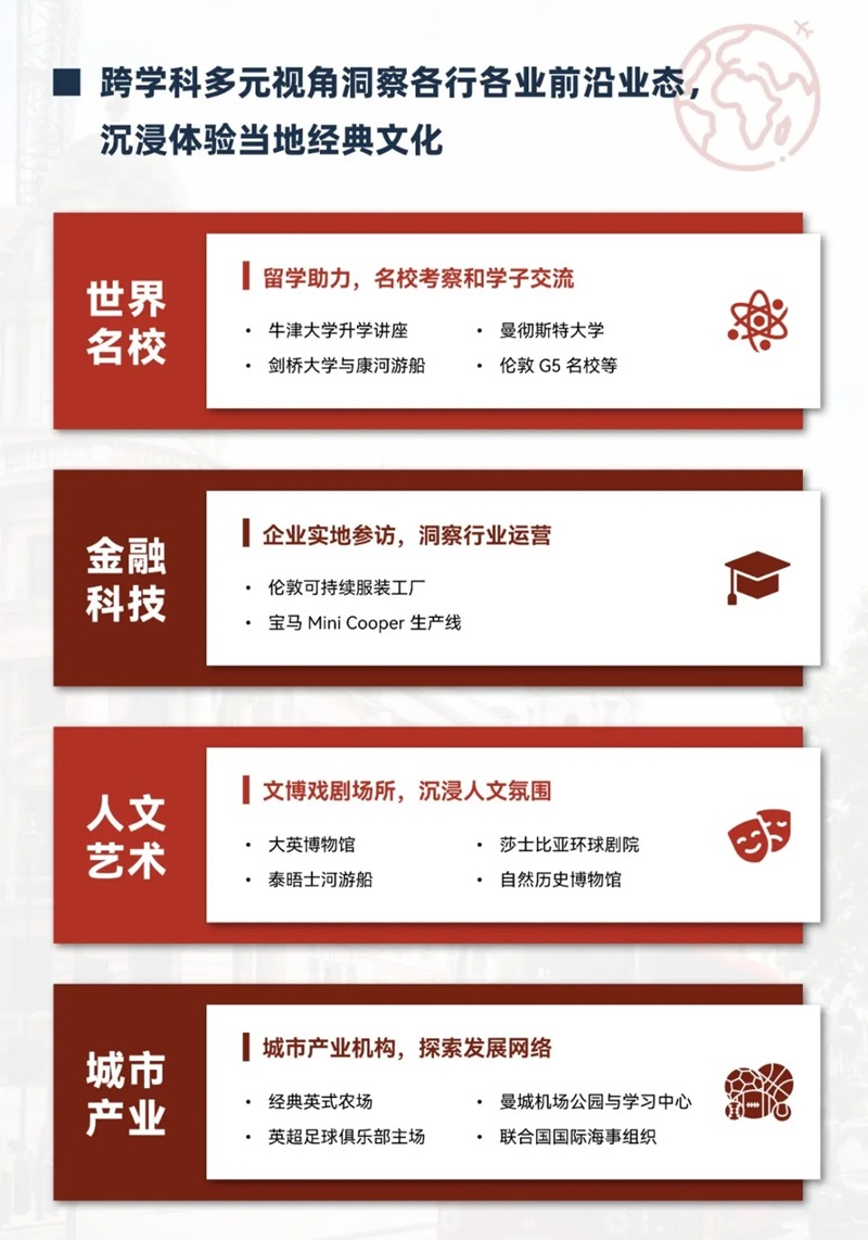 参访曼彻斯特大学、英超足球俱乐部主场、曼彻斯特机场学习中心,体验曼城英式农场;