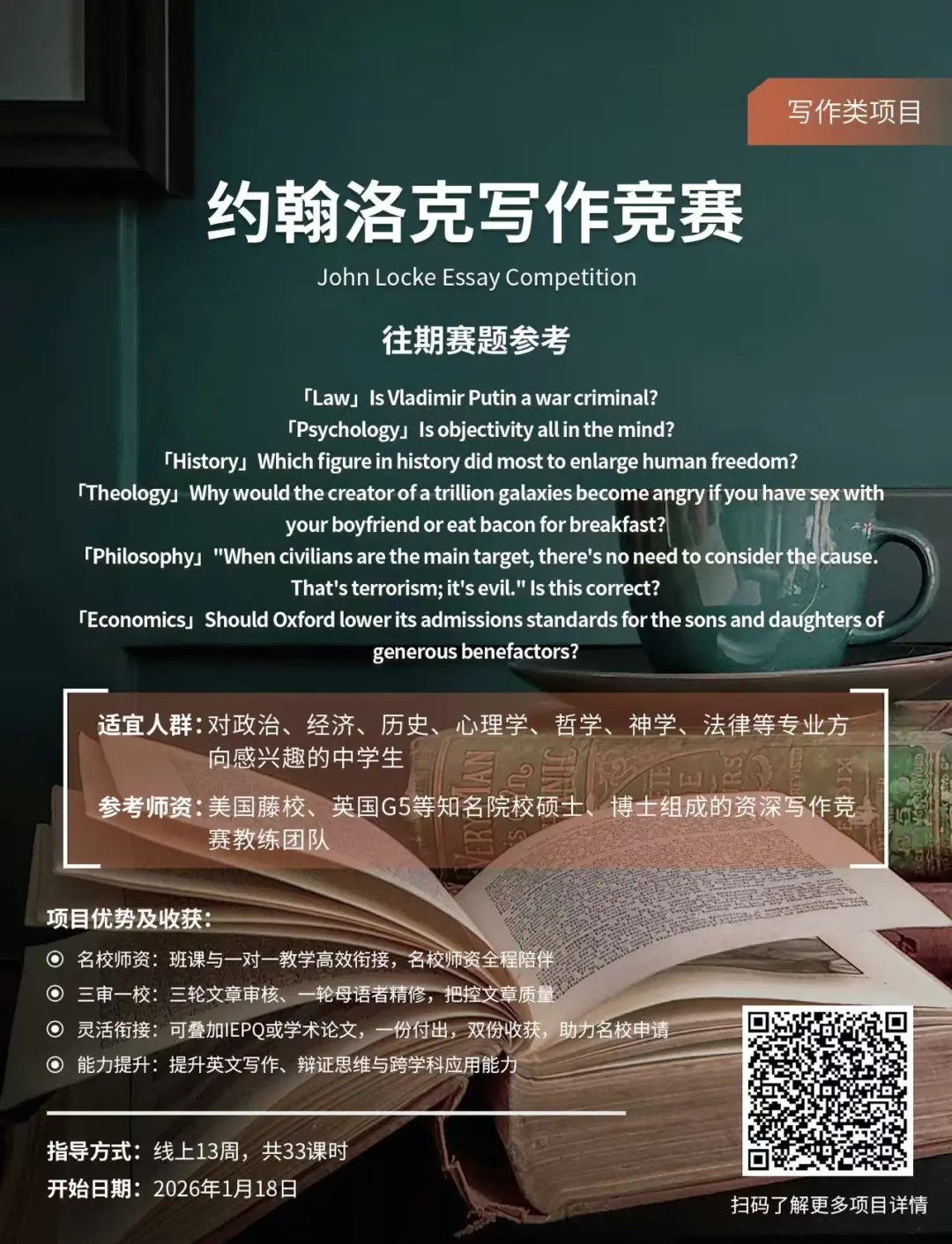 作为人文社科领域的“顶级赛事”,约翰洛克竞赛不仅是升学加分项,更能系统性提升你的批判性思维与学术写作能力。如果你对人文社科感兴趣,且目标是顶尖名校,不妨抓住2026赛季的机会噢~