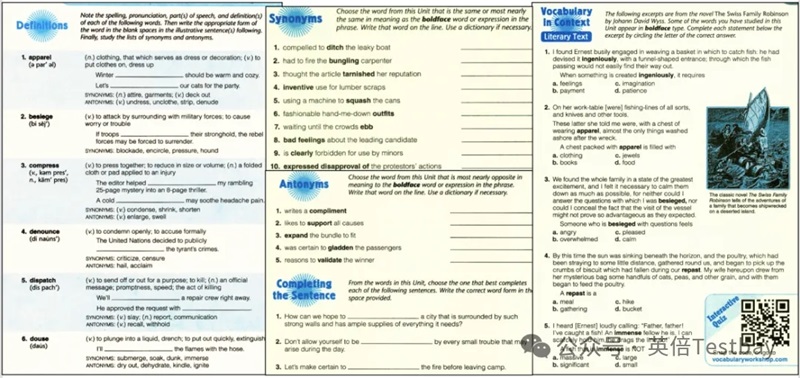 对于想冲击美国TOP前10私立高校考SSAT的同学,那么Vocabulary Workshop是一个不错的选择,但是如果孩子要考SSAT,但词汇量还很小,连4000词都没掌握的话,那么最好还是先搞定4000词再说。
