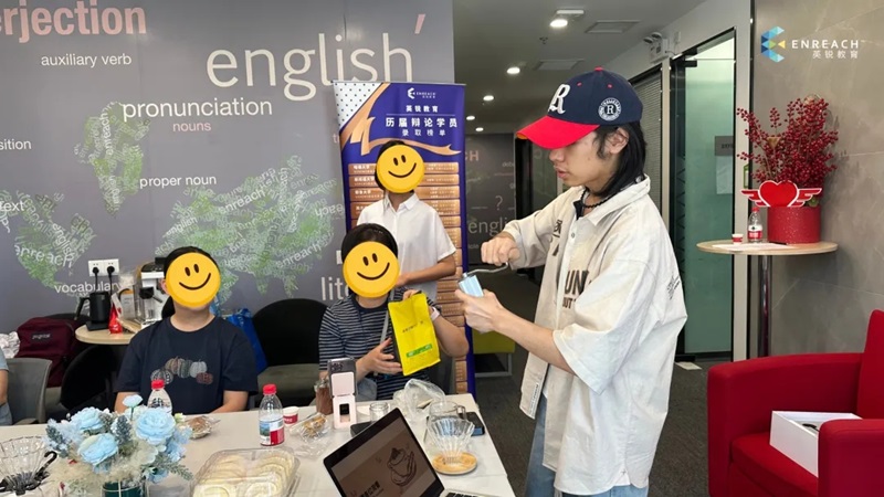在高二下学期个人活动“点睛”的过程中,我们有意识地引入了“咖啡”这一兴趣线索。Terry 不仅是一名受过专业训练的咖啡师,他也借助英锐平台策划并举办了首届「灵感星球·咖啡沙龙」。通过围绕嗅觉与味觉展开的讨论,他将对个人偏好的倾听、尊重与交流转化为可感知的日常体验,以行动诠释“Bridge Builder”的内涵,搭建起不同观点得以并存和理解的交流场域。这一兴趣线索在气质层面与其心理学与社会观察的学术主线形成了呼应,也为整体材料增添了层次与趣味度。