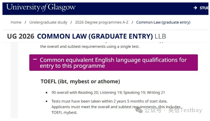 近日,之前官宣拒认新托福成绩的格拉斯哥大学又突然“改口”,接受2026新版托福成绩,并在官网更新了本科/硕士的新托福成绩要求 ,随着2026年托福改革进入倒计时阶段,多所顶尖高校纷纷在官网更新了2026年托福成绩要求。