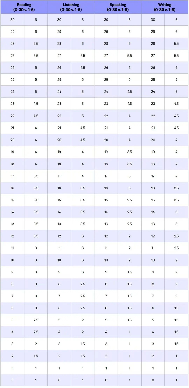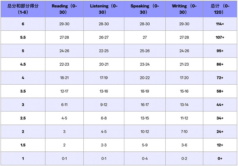 托福评分体系详细对照