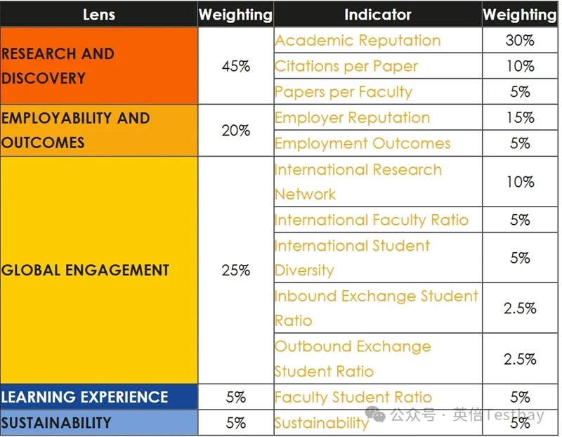 欧洲大学排名和QS世界大学排名指标有很多相似的地方,比如“学术声誉”、“雇主声誉””、“就业成果”等。但QS欧洲大学排名部分指标权重有所调整,并且增加了新的指标,包括“入境交换生”、“出境交换生”。