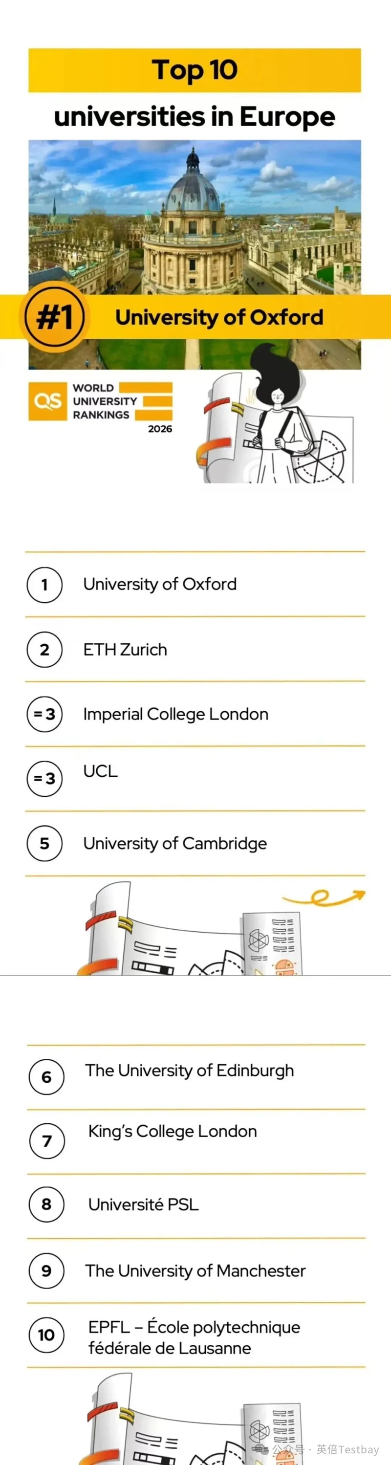 全球高等教育分析机构QS,正式发布了2026QS欧洲大学排名。QS官方表示,作为QS区域大学排名的一部分,欧洲大学排名有自己独特的排名指标,从而反映该区域独特的优先特征和挑战性。