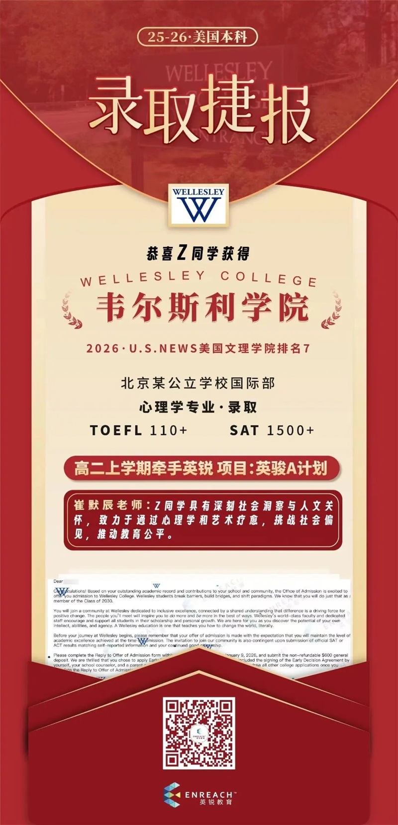 Wellesley的校园会有更广阔的天地等着Bella去探索。继续保持你的好奇与敏锐,勇敢地去成为那个你想成为的“变革者”吧!