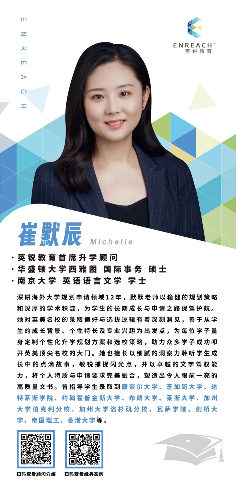 默默老师的风格不是推翻重来,而是在我原有的思路上帮我深化。我提出一个想法,她会帮我想怎么让它更完整、更有说服力,然后让我自己去执行。比如心理学这个专业,在我的认知里竞争压力很大,换一个方向可能更像捷径。但她从来没有劝我换,反而让我更加坚定自己的选择。选校也是如此。