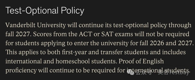 范德堡大学继续采取标化可选的标化政策。假如同学们提交了标化成绩,那么学校将综合考虑申请人的学术记录:包括课程难度、ACT或SAT成绩(如已提交)、个人陈述、推荐信、课外活动的广度和深度以及其他由学生本人提交的材料。