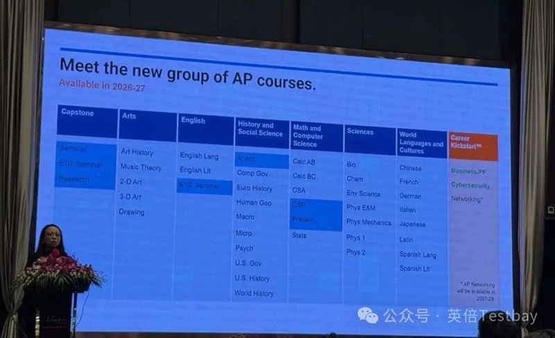 2026 年AP新增的两门职业导向型课程:AP Business with Personal Finance(商业与个人理财)和 AP Cybersecurity(网络安全)。这两门课程均属于 AP Career Kickstart 系列,计划于今年秋季全球推出,2027年5月首次进行AP考试。