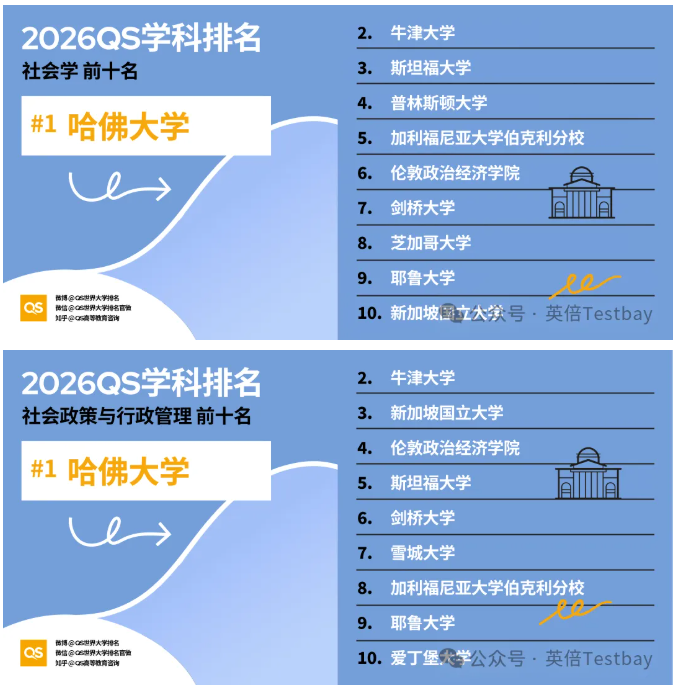近日,全球四大学术排名机构之一QS发布了2026年世界大学学科排名!本次排名对全球100个国家和地区的1900多所大学的21000多个学术项目,跨越55个学术分支和五大广泛的学术板块:艺术与人文、工程与技术、生命科学与医学、自然科学以及社会科学与管理。一起看看本年度的最新排名!