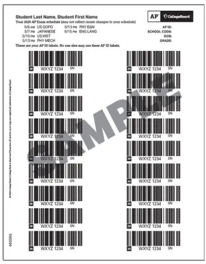 注:考生的AP ID Label Sheet将在参加第一门混合机考考试时由考场发放,后续每次混合机考考试请考生务必自行携带至考场,切勿丢失。考生的AP ID Label是考生本人专属的,禁止与他人交换或者分享AP ID Label Sheet