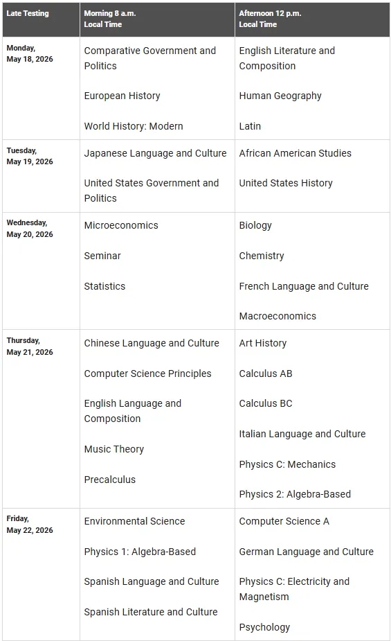 AP延迟考试时间:2026年5月18-22日