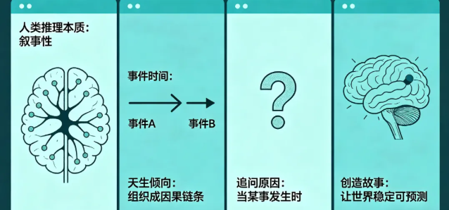 人类推理本质上是叙事性的。我们天生倾向于将事件组织成因果链条。当某事发生时,我们本能地追问原因。当答案不明确时,我们常常自己创造一个——因为故事让世界显得稳定、可预测、可理解。