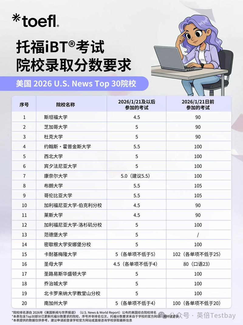 新托福分数要求汇总