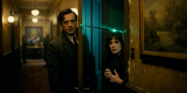 "The map showed him entering here," Manny replied, his voice barely audible over the shouting down in the lobby. "But the enchantments on this floor are... they're old, Elara. Older than the hotel."