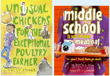 ● Epistolary: Stories told through documents like letters, diaries, or email logs. Example: Unusual Chickens for the Exceptional Poultry Farmer by Kelly Jones; Middle School is Worse Than Meatloaf by Jennifer L. Holm.