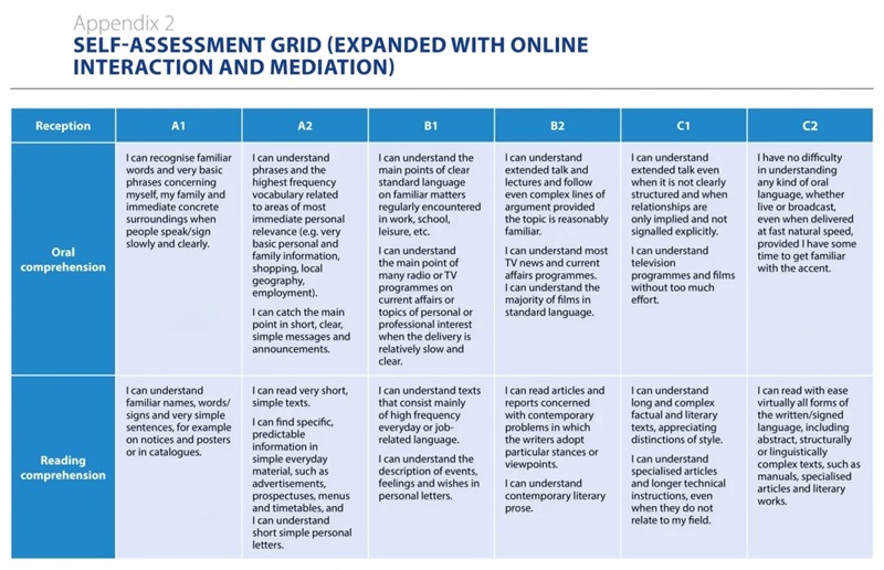 欧洲委员会官网 CEFR Can-do 自评量表
