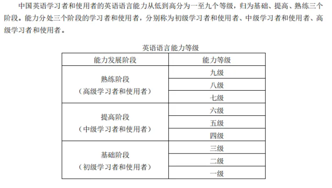 国内《中国英语能力等级量表》自测
