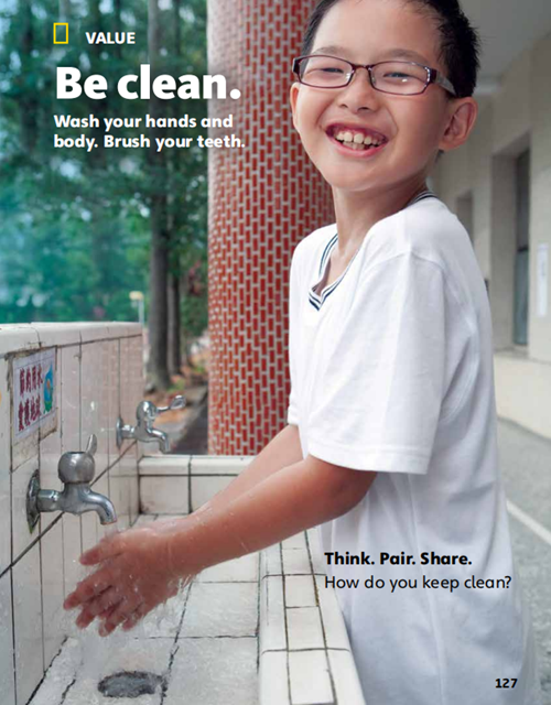 每个单元,老师都将从有趣的游戏引导学生进入课堂,学习词汇、语法、阅读、写作,并通过课堂内容传递正确的价值观,如在学校好好学习(U1 My Classroom)、享受大自然(U2 My World)、爱家人(U3 My Family)。