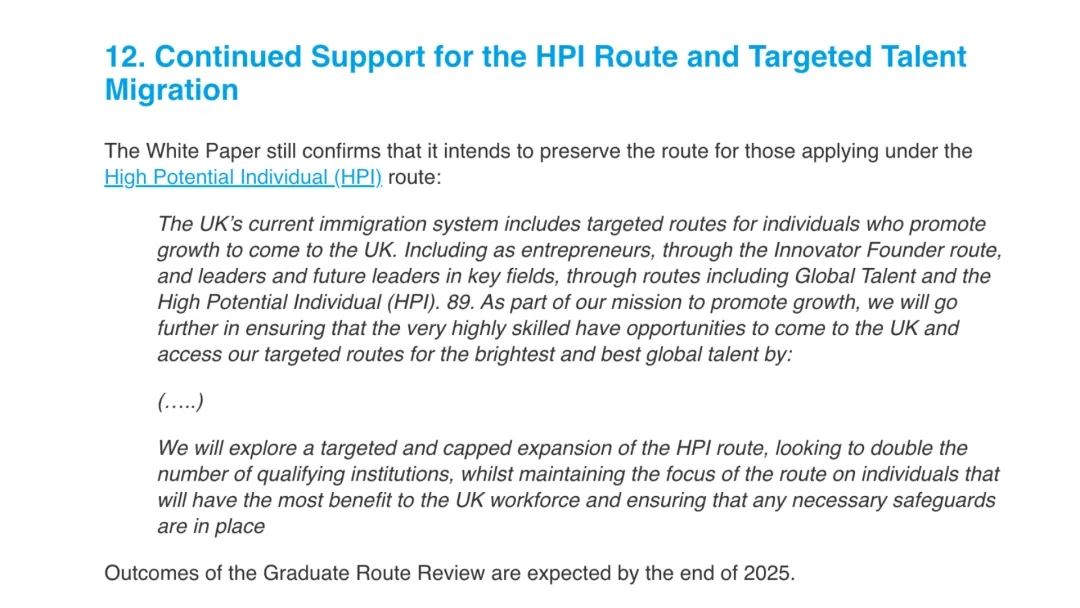 高潜力人才签证(HPI)范围扩大: 面向全球TOP 50院校毕业生的HPI签证,2025年新增了亚洲、南美20所顶尖大学(包括中国的清华、北大、复旦等高校)。这些院校的毕业生可凭借学位直接申请2年英国工作签证,无需先获得英国学历,为顶尖人才赴英工作开辟了“绿色通道”。