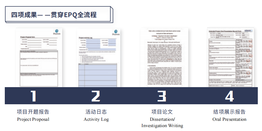 在 EPQ 的学习过程中,学生需产出四份关键成果: