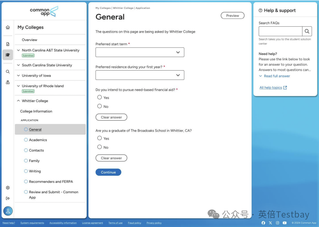 系统重新调整了主导航顺序,将核心的"My Common Application"功能置于首位,更符合申请者的操作逻辑。表单填写流程经过重新设计,减少了操作步骤,帮助学生更高效地完成申请。