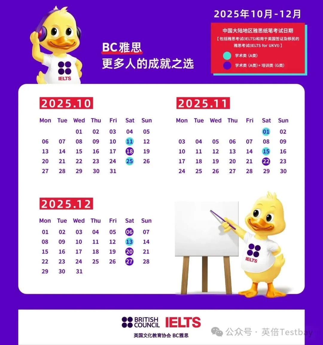 中国大陆地区用于英国签证及移民的雅思生活技能类考试(10-12月)考试场次安排