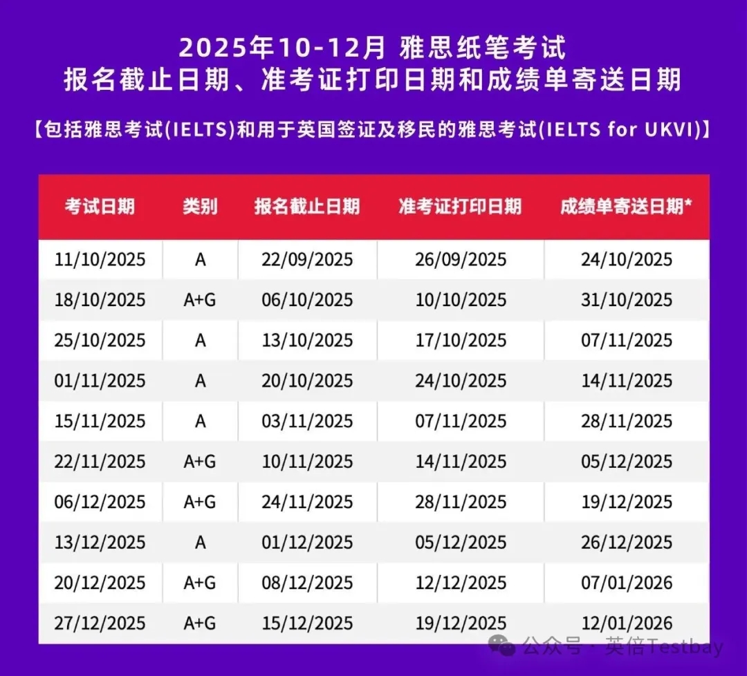 25年最后一波雅思考位开抢!