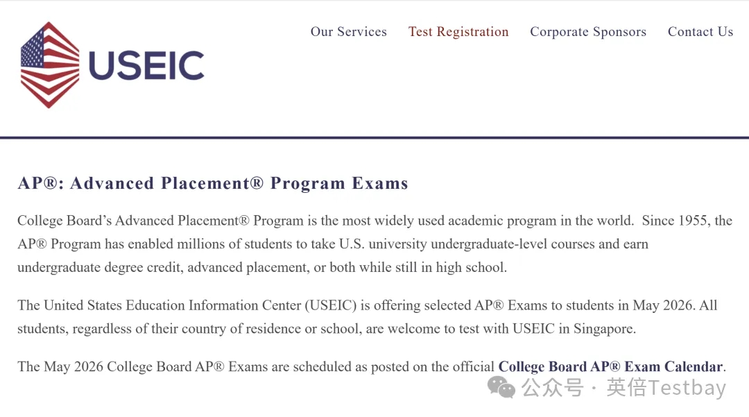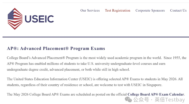 新加坡USEIC考评局2026年AP考试报名通道已正式开启! 备战2026年AP的考生和家长们看过来,作为最早开放的社会考生考区之一,新加坡是许多非AP校学生的首选。今天倍倍带来USEIC新加坡考区最全报名指南,带你抢占先机!
