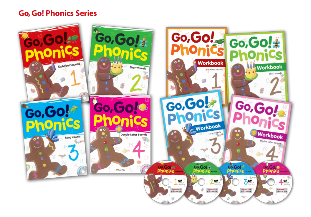 《Go go Phonics》教材共分为四个级别,从字母发音入门,逐步覆盖短元音、长元音及双字母组合发音规则,最终帮助学生掌握 44 种发音组合,实现独立拼读单词的目标。每个级别的重点教学内容如下: