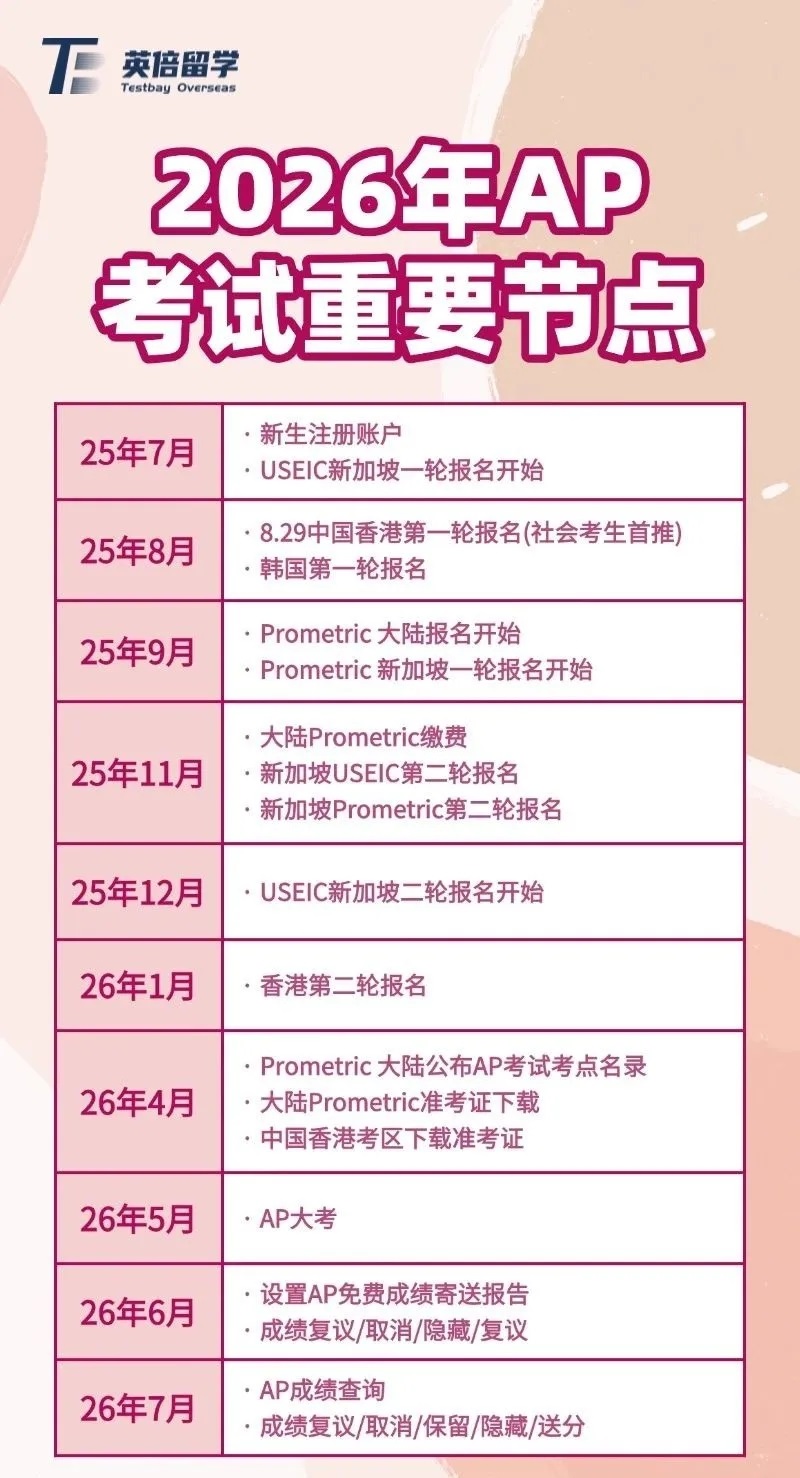 2026年AP考试重要节点