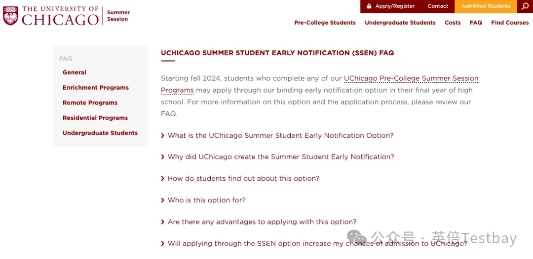 自2024年9月起,凡是参加过芝加哥大学夏校的学生们,线下或线上都算,均可以在高中的最后一年通过SSEN提前申请芝加哥大学的本科。