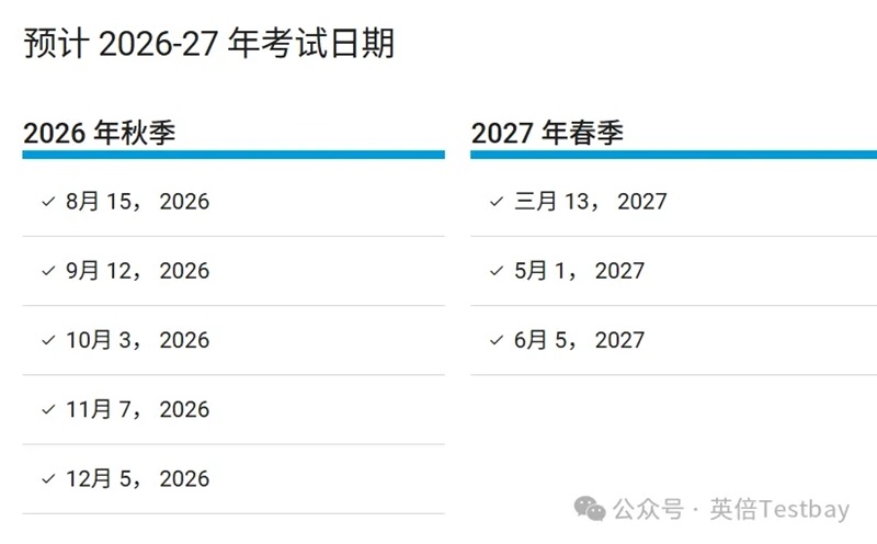 CB官方已在官网更新了2026下半年及2027年春季的SAT考试日期安排