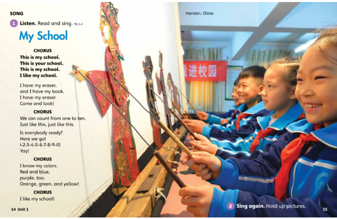 *选自英锐基础入门班教材《Our World》L1-Unit1,每单元都有主题相关的英文歌曲