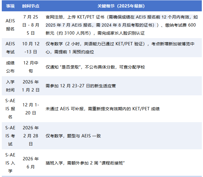 作为国际生进入新加坡政府 / 辅助小学(小二至小五)的 “必经之路”,AEIS 考试每年都让无数家长焦虑。2025 年考试时间微调、英语能力评估规则延续 2022 年改革要求,KET/PET 成绩的作用愈发关键 —— 今天就把这门 “新加坡留学敲门砖” 的细节,从报名到备考、从避坑到备选,每一步都给你说清楚。